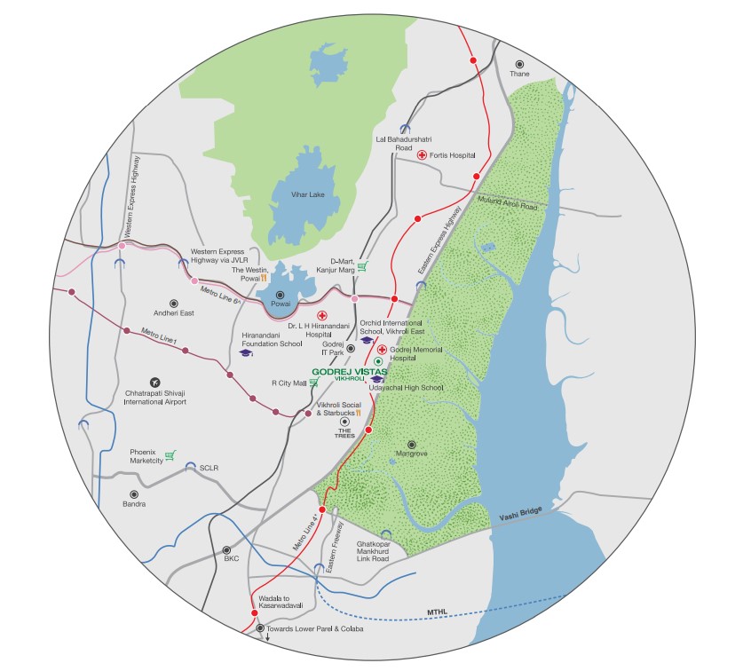 Godrej Vistas is a gateway to your desires, with sweeping views of endless mangroves on the Eastern side and the majestic hills on the Western. Godrej Vikhroli East isn’t just an address, it's an open armed welcome to a world where every moment is filled with joy, and with everything you hold dear, right at the heart of the city. Vistas Vikhroli offers panoramic views, a visual feast that is truly rare in the city of Mumbai. With a vision to develop a state-of-the-art project, some of the best technical, engineering and architectural elements have been employed to ensure that Godrej Tower Vikhroli East is built and delivered to perfection and adheres to the highest standards of quality and efficiency, making Vistas Vikhroli Mumbai a prominent landmark for the discerning home owner.